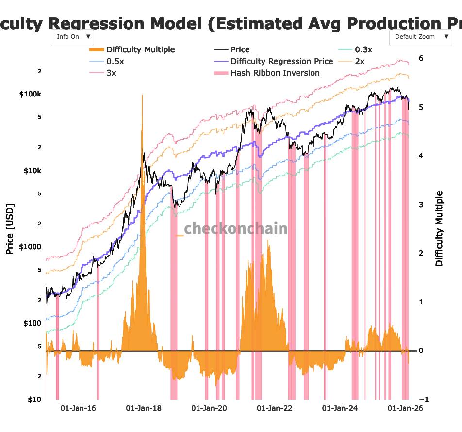 In the long term, the profitability outlook for the Mining industry remains bleak. The Medium cost to produce one Bitcoin is currently around $87,000, according to Checkonchain, while the spot price is only around $70,000, 20% lower than the cost. The Block 's "Mining Outlook 2026" report shows that the share of transaction fees in Miners ' total revenue has decreased from around 7% to nearly 1% after the on-chain activity frenzy of 2024 subsided, making the industry increasingly dependent on price volatility rather than network-based income.