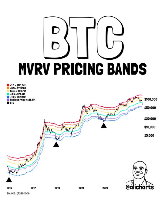 Bitcoin $BTC has historically bottomed around the −1.0 MVRV Pricing Band. That level currently sits at $52,040.