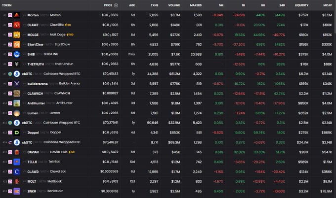 Outside of the top 10 tokens (which are all wrapped Coinbase BTC)