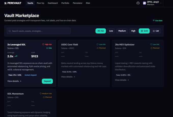 The first $PercVault I decided to build was a 2x SOL vault. Simple and elegant use of #percolator As http:/percvault.io gets built out over the next couple of months and @toly gets Percolator on mainnet, we will be expanding and building a lot more vaults! If you have an ideas please do let me know what vaults you may want to see