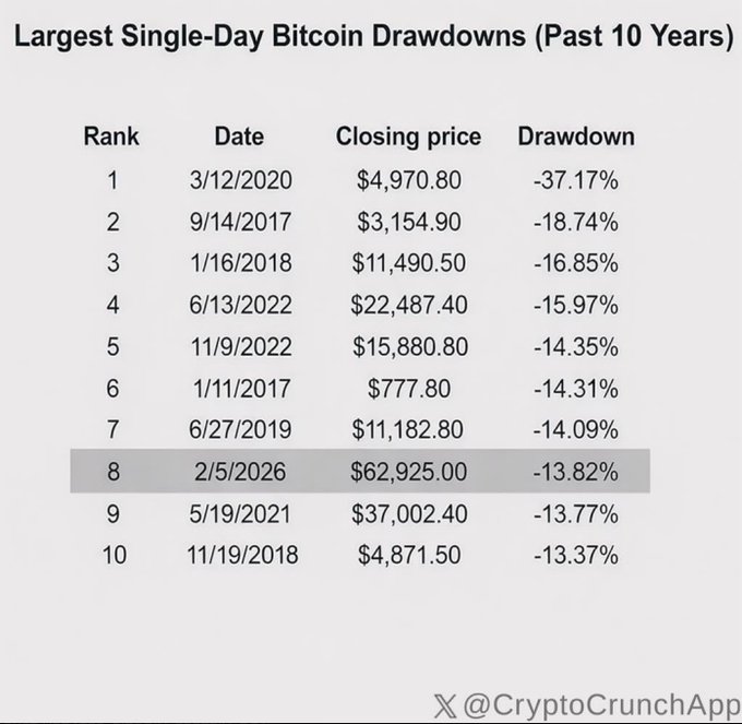 Did you know that on February 5, 2026, Bitcoin plummeted 13.82% in a single day? This was the eighth largest single-day drop in the past 10 years. We just survived one of the top 10 biggest Bitcoin price crashes in history.