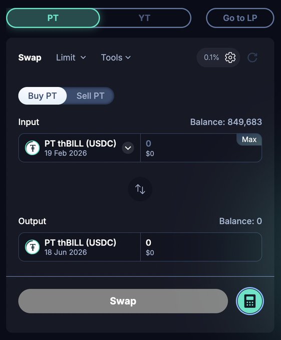 For those looking to keep your yield rolling from the [19 Feb] thBILL pool, you can migrate ahead of maturity by swapping your PT/LP positions into the new pool.