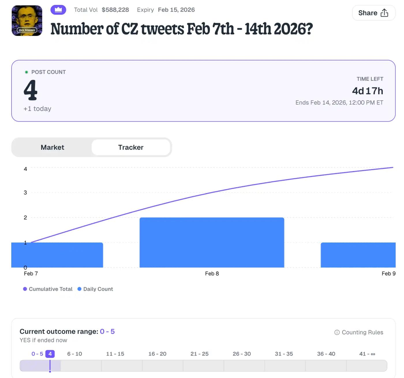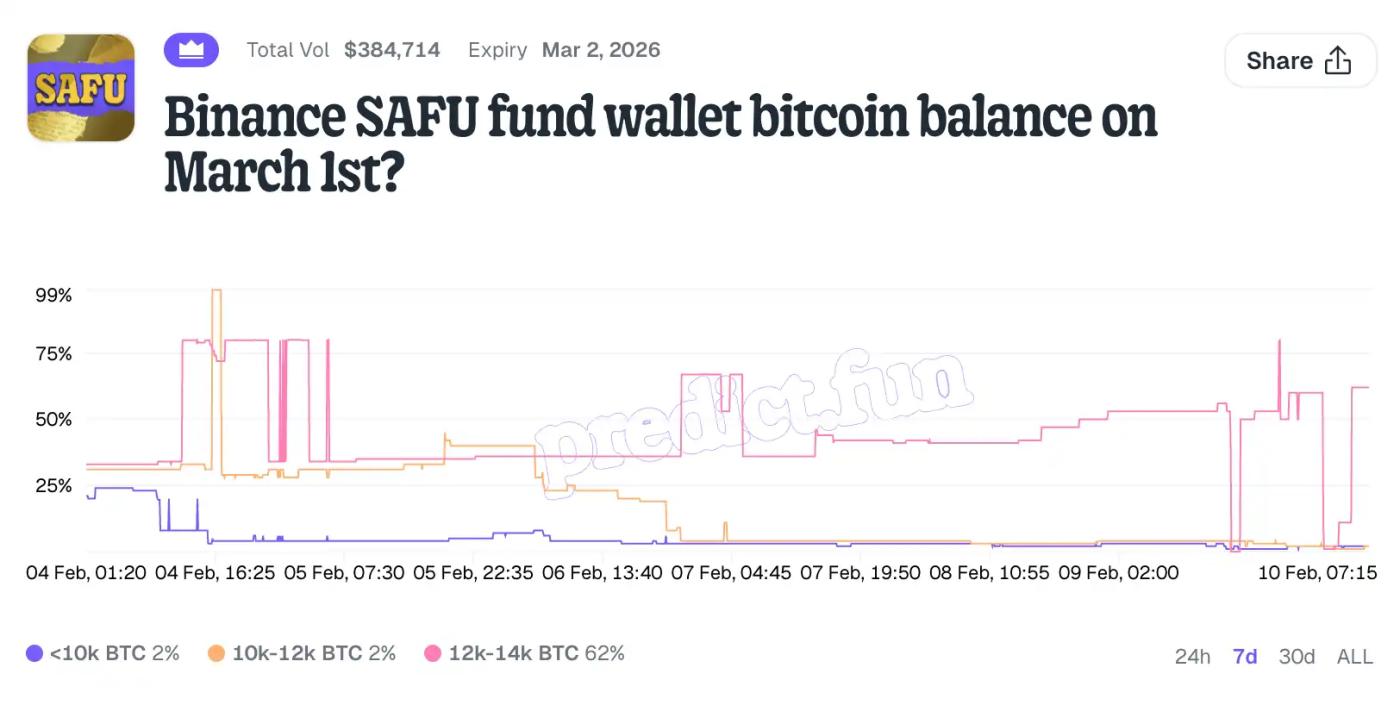 Beyond product mechanics and user experience, some emerging prediction market platforms are also exploring differentiated approaches in their content design. Instead of simply replicating generic events already available on platforms like Polymarket or Kalshi, they are launching more niche-focused "exclusive event markets" centered around topics of high interest within the crypto community. For example, prediction.fun's prediction events related to Binance and community hot topics, such as "Changes in Binance SAFU Fund Wallet Bitcoin Balance on March 1st" and "Number of Tweets by CZ between February 7th and 14th, 2026," fall into categories more relevant to the daily discussions among crypto users.