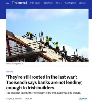 "TAOISEACH MICHEÁL MARTIN has said the banks are “still rooted in the last war” and said he has called on them to lend more to Irish builders to boost housing supply.