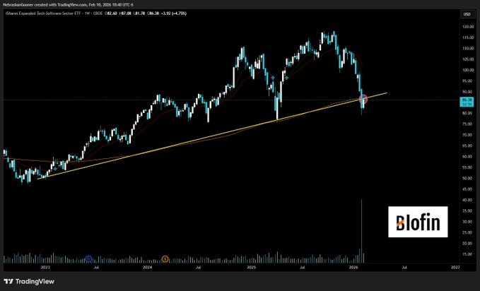 $igv (per request) Yikes. Mega volume trendline and 99smma breakdown. Looks like a breakdown retest here. Needs to reclaim that high volume breakdown candle otherwise like to fade lower