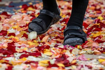Draped in burnt-orange robes, two dozen Buddhist monks set out on a 2,300-mile 'Walk for Peace' — a self-described spiritual journey across nine states in US to raise awareness of peace, kindness and compassion reut.rs/462H23M 📷 Evelyn Hockstein