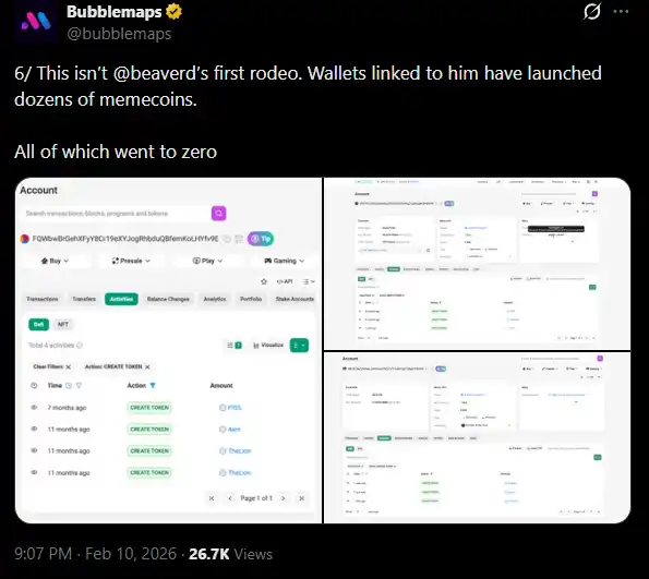 Finally, Bubblemaps also pointed out that all the Beaver-related addresses tracked had not only issued this one token, but many others, and all of them had gone to zero.