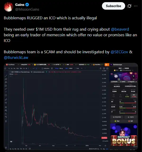 Players siding with Beaver even mocked the market performance of the Bubblemaps token, arguing that compared to Beaver, Bubblemaps, which conducted an ICO and made promises, was an illegal scam and should be held accountable.