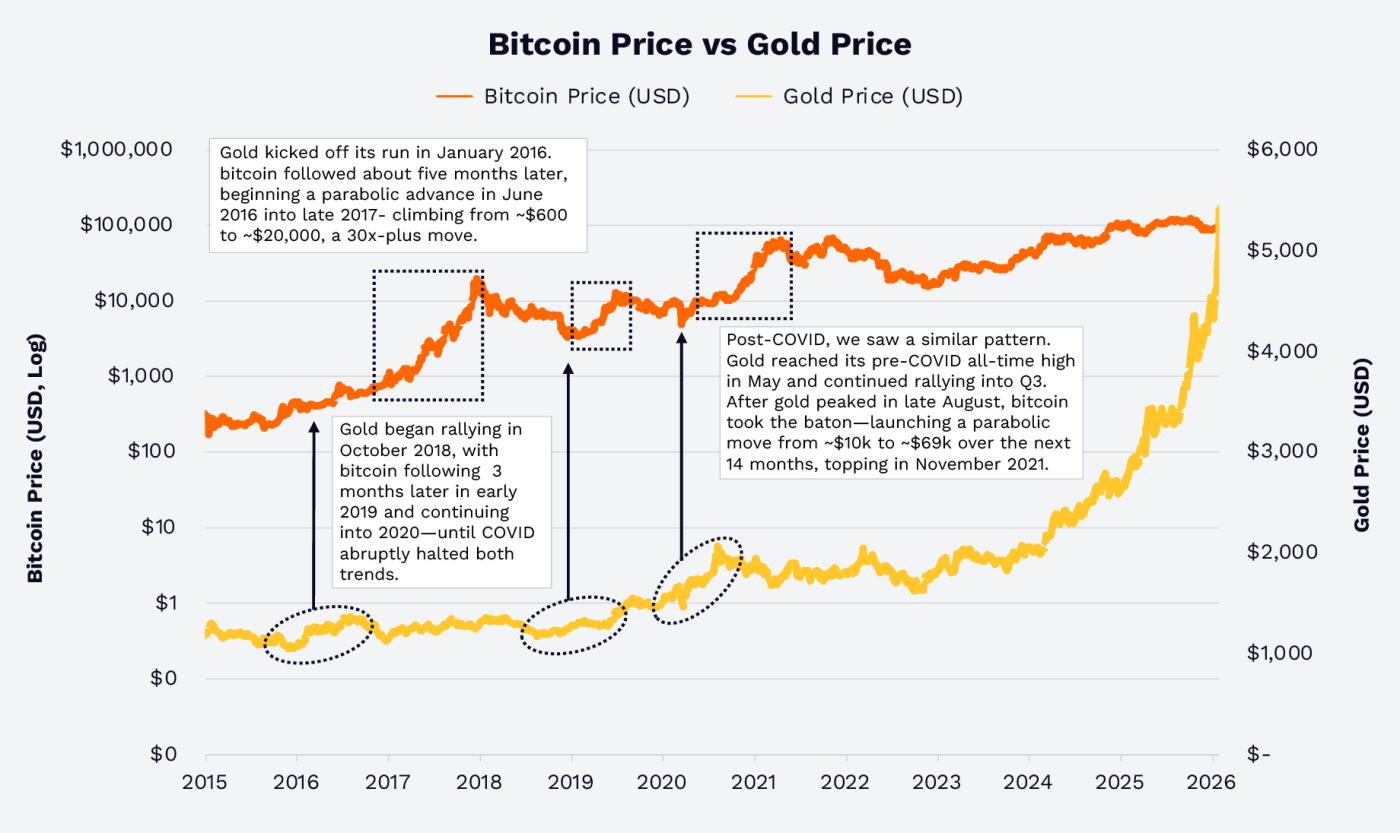It's worth noting that in the market cycle since 2020, the correlation between Bitcoin and gold returns remains very low. However, gold may still be a leading indicator for Bitcoin.
