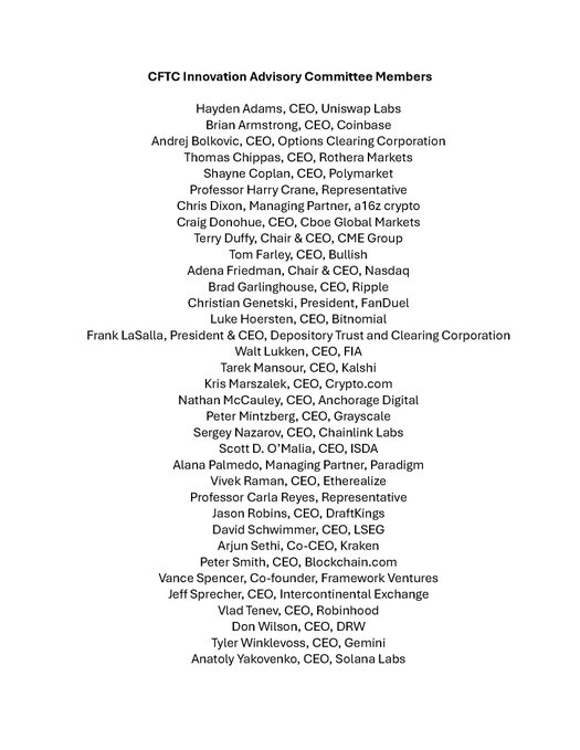 Latest: @CFTC releases its full list of members for the CFTC Innovation Advisory Committee.