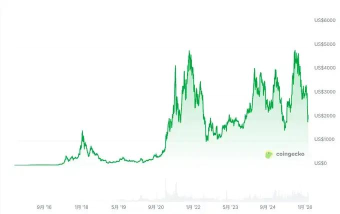 The conversion is even more disheartening: In January 2018, ETH first reached $1400. Adjusted for US CPI inflation, that $1400 would be equivalent to approximately $1806 by February 2026.