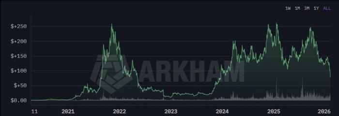 Over time, Anatoly Yakovenko's net worth is likely closely correlated with Solana's market performance, having weathered its dramatic stock price fluctuations (the chart below shows the Solana token price movement over recent years). When SOL reached a cyclical high of approximately $260 in November 2021, his combined holdings of tokens and company equity likely put his net worth at over $2 billion, and possibly even close to $3 billion, depending on the value of his Solana Labs stake.