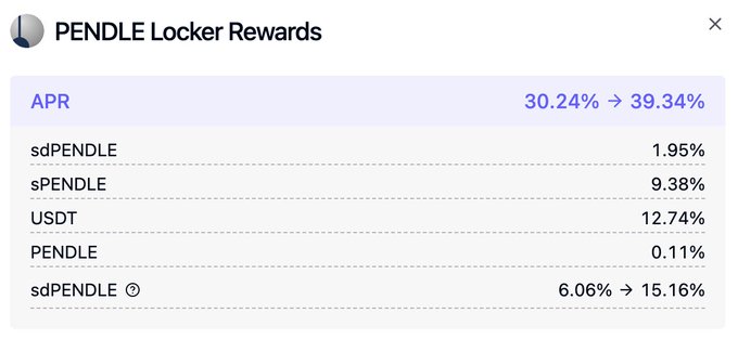 First @pendle_fi sPENDLE rewards are now streaming into the sdPENDLE gauge. Here’s what each reward stream means for sdPENDLE stakers: - sPENDLE: New reward stream, replacing the legacy ones Ending soon: - sdPENDLE (non-boostable): Airdrop from Pendle - USDT: Native vePENDLE yield - PENDLE: Platform fees from Pendle strategies - sdPENDLE (boostable): Rewards from voting power delegation The transition is going smoothly. No action is required for staked sdPENDLE holders.