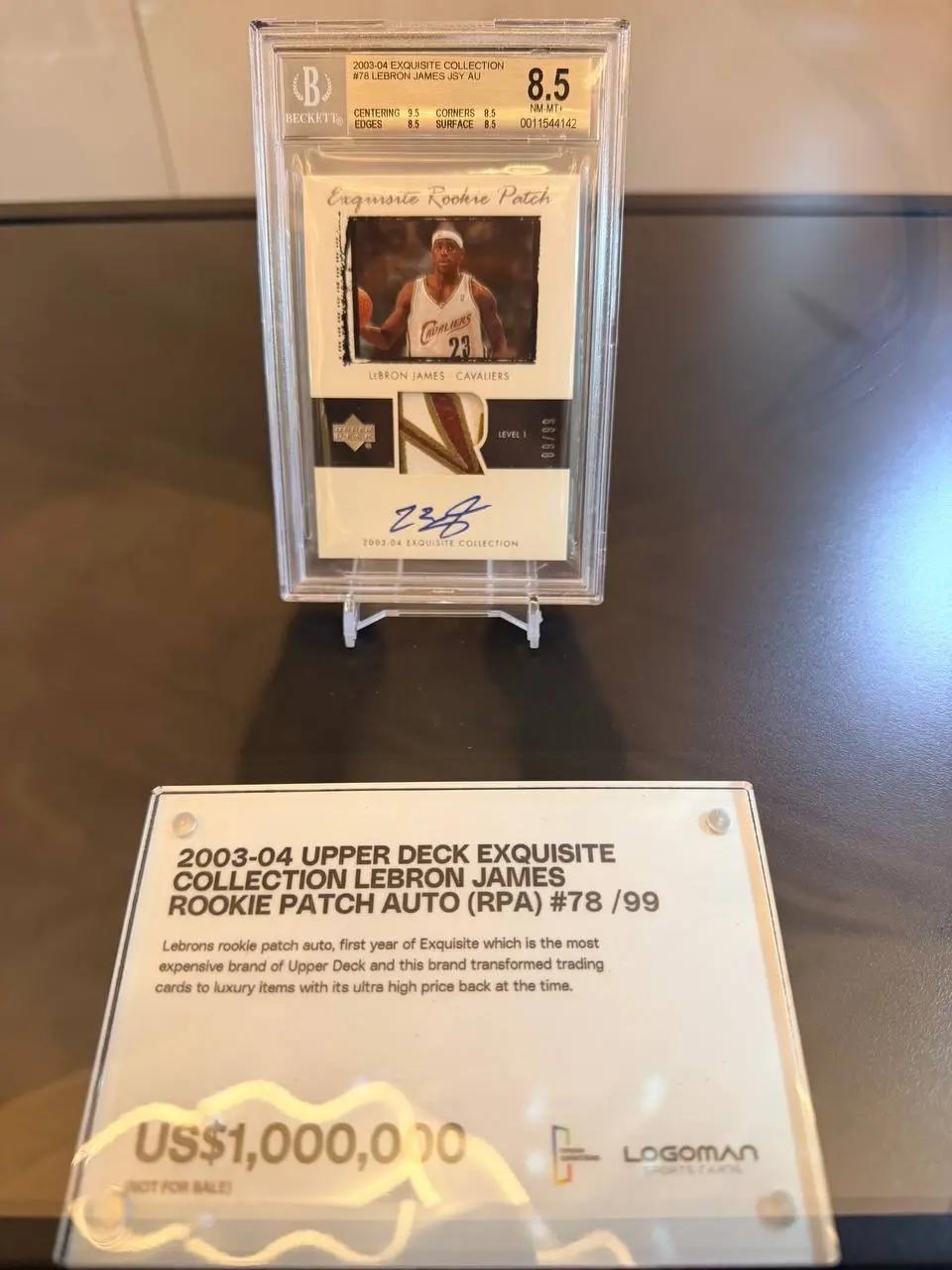 According to the organizers, some of the collectibles are 1/1 scale unique versions, with a single card's estimated value ranging from $1 million to $3 million. For example, one of the exhibited cards, the LeBron James rookie patch auto, comes from Upper Deck's first-year Exquisite premium product line launched in 2003. Exquisite broke the traditional pricing logic of the trading card market with its extremely high prices, and is considered a key milestone in pushing trading cards into the luxury collectibles realm; this particular card is estimated to be worth approximately $1 million.