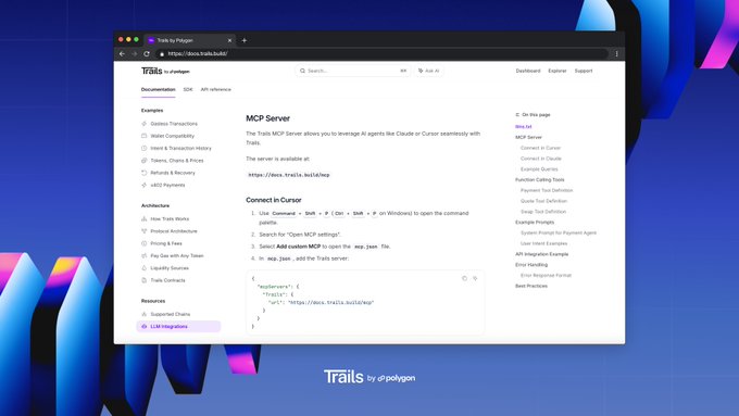 Polygon's Trails MCP Server gives LLMs one secure endpoint to orchestrate crosschain payments, swaps, and bridges, automatically.