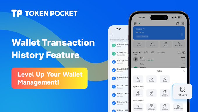 🚀 Level Up Your Wallet Management: Wallet Transaction History Viewing! Easily view, filter, and analyze your wallet's past activities for better insights and control—managing your assets should be effortless. 📱TokenPocket -> More Tools -> History