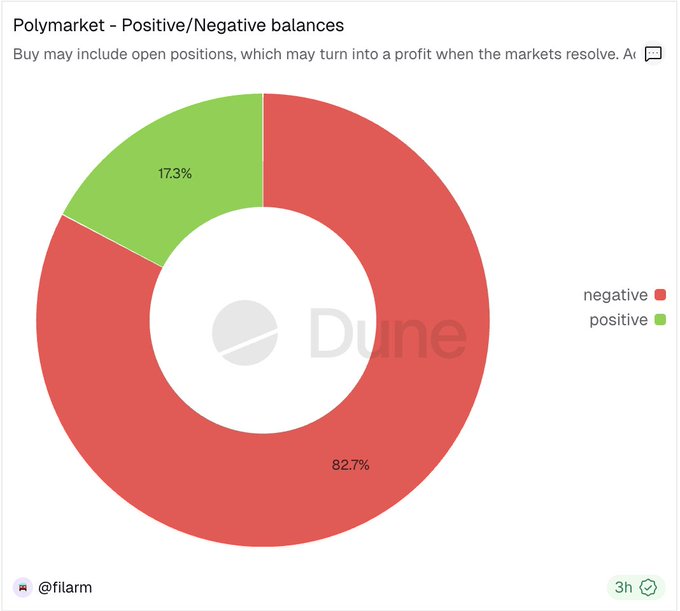 btw if you think you are going to kill it by trading on prediction markets. Just FYI 83% of the polymarket users end up losing money.