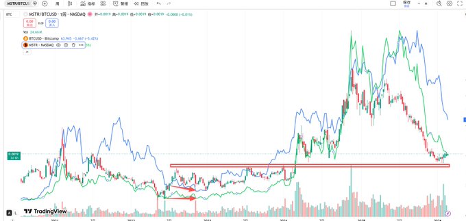 In fact, the current bear market may be equivalent to the period of May-June 2022 (this will be analyzed tomorrow). MSTR and MSTR/BTC bottomed out in June 2022, and when BTC hit a new low at the end of the year, MSTR basically formed a Double Botto.