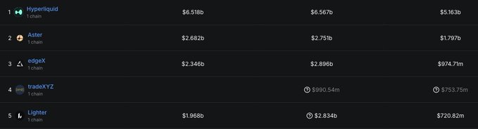 Not looking great for Lighter bros TradeXYZ now has more open interest and almost more volume than Lighter Soon another HIP3 DEX will enter the top 5
