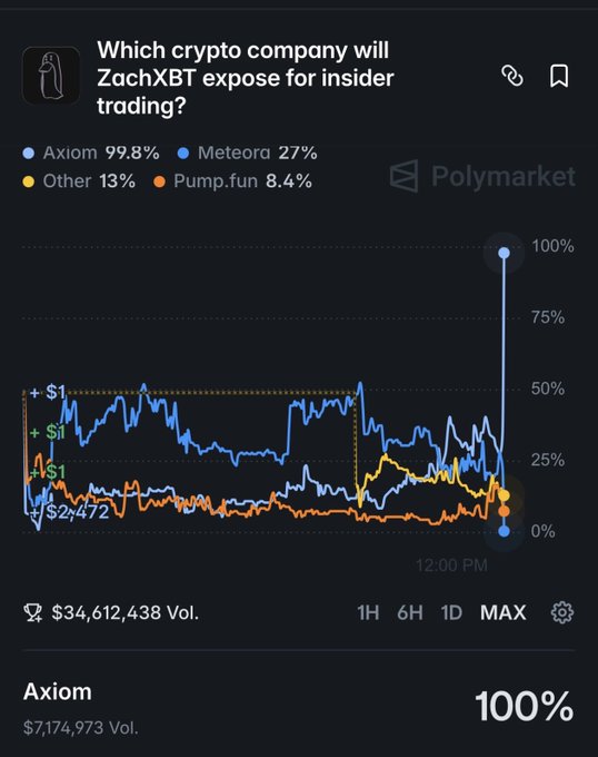 There was $34M in trading volume on this market, and it correctly predicted Axiom as the culprit before the news was shared.