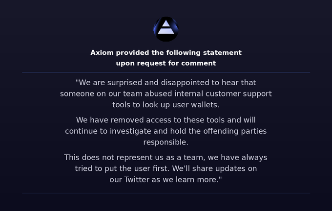 does this reflect that poorly on axiom? seems like a case of a rogue employee rather than the org as a whole