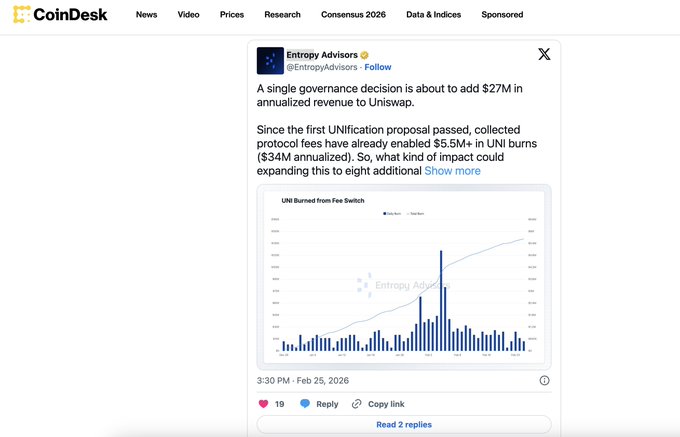 Appreciate @CoinDesk for quoting our analysis on @Uniswap's upcoming fee switch decision. Full breakdown below 👇