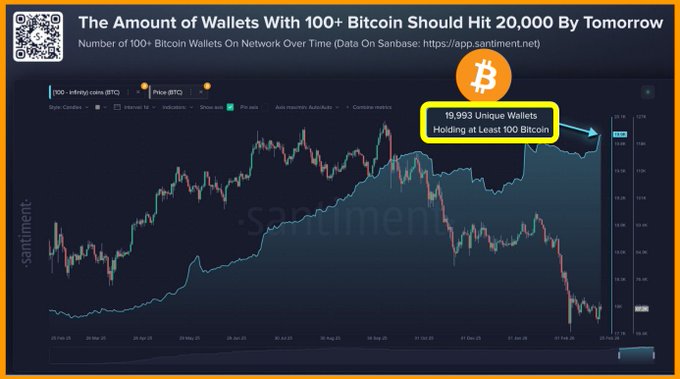 NEARLY 20,000 BITCOIN WALLETS NOW HOLD 100+ BTC.