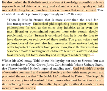 Peter Thiel's The Straussian Moment argues society must be ruled by an elite with secret knowledge, while the masses live under noble lies. From Leo Strauss, he warns transparency destabilizes society & that constant threats are needed to prevent decay, justifying elite control.