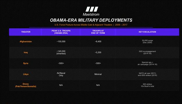 Given that the Fed reduced interest rates to zero and began money printing via QE in late 2008, there wasn’t anything for them to do in response to Obama’s surge of troop deployments to the Middle Eastern theatre. Money was free and supplied in infinite quantities. The US war machine and its contractors feasted.