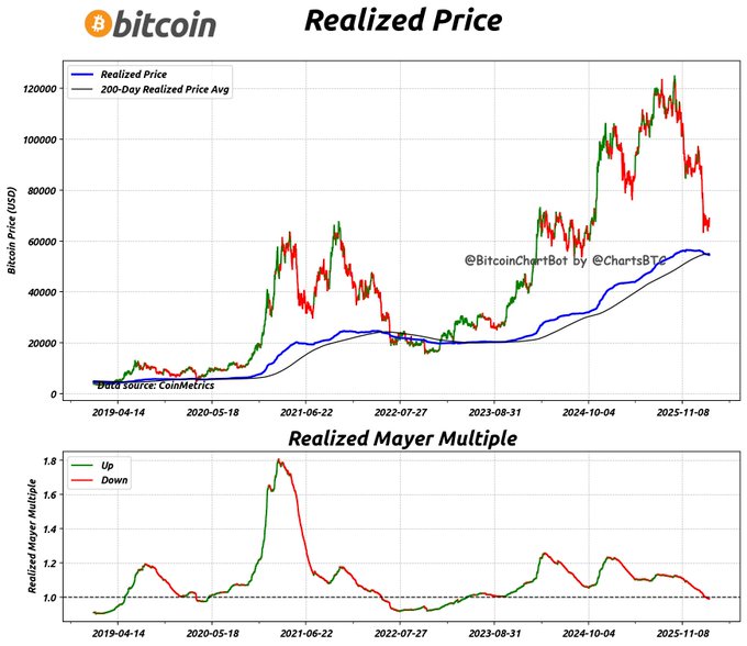#bitcoin realized price Price: $68,923 Realized Mayer Multiple: 0.99 Data as of 2026-03-02 #Bitcoin $BTC #RealizedPrice #RMM #BitcoinChartBot