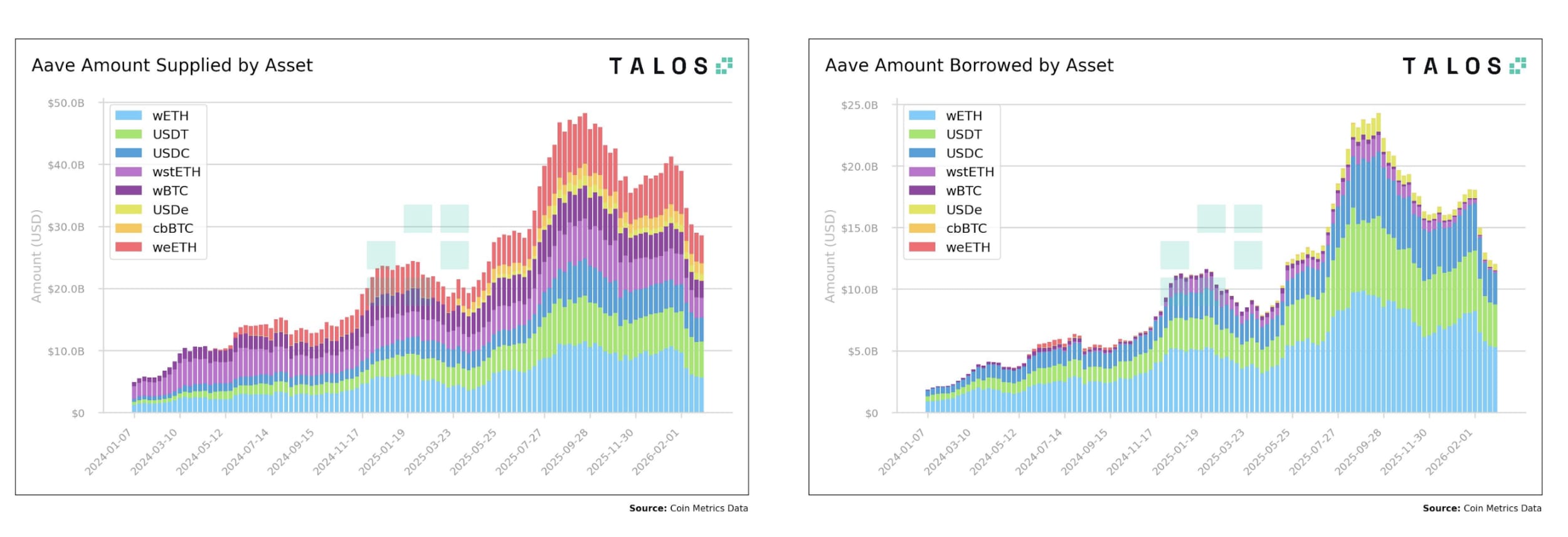Emphasis on Risk Measures: Aave calibrates risk at the asset level, using conservative collateral parameters, supply and borrow caps, and kinked interest‑rate curves to protect borrowers from sudden shifts in token prices and liquidations.