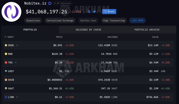 Iranian cryptocurrency exchange Nobitex hasn't processed any outbound transactions on their Ethereum addresses in 2 days; TON transactions are going through, but I suspect this is botted activity