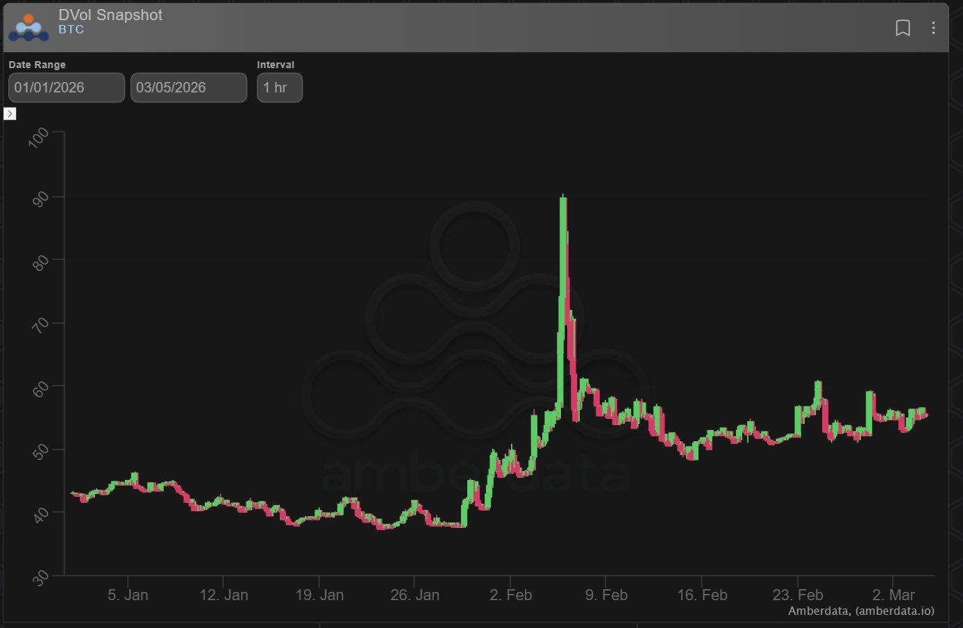 Dvol (1month proxy Implied Vol) remains firm as Realized performs, and global uncertainties manifest to increased demand for optionality.