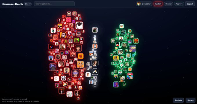 It's an aggregator of Twitter(X) sentiment in regards to the debates of the day. For now the big debate is bip110.