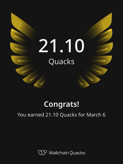 Just earned 21.10 Quacks on @wallchain in one day 🦆