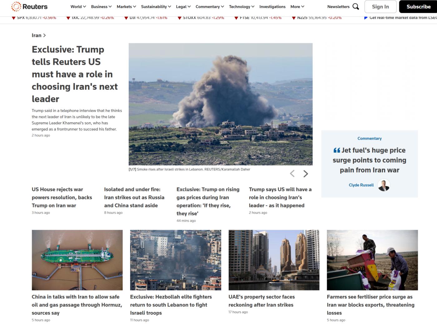 Each entry includes today's trading volume and arrows indicating whether the price has risen or fallen. The visual style is similar to that of Reuters' website, rather than that of a cryptocurrency trading platform. This layout pushes the "All markets" list, which originally occupied the core of the homepage, down to the second screen.