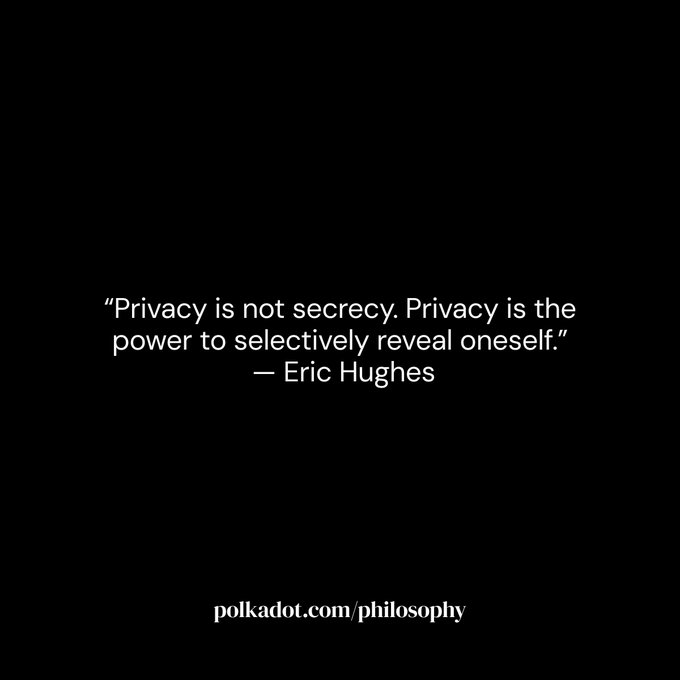 "Privacy is not secrecy. Privacy is the power to selectively reveal oneself.” - Eric Hughes, March 9th, 1993. This idea didn’t start with crypto. It didn’t start with blockchains. It’s part of a much longer fight for human agency in the digital world. Thirty-three years on, @Polkadot is building for that future. → http:/polkadot.com/philosophy