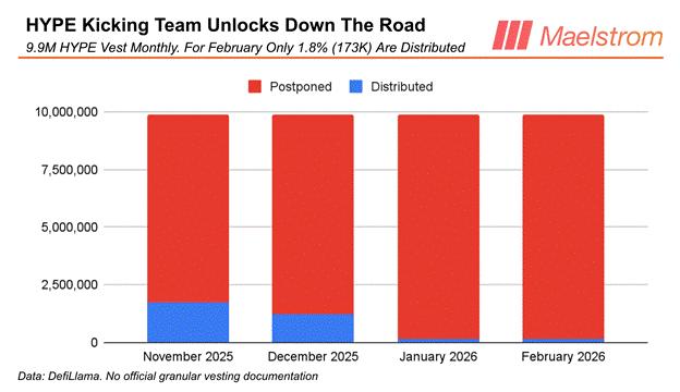 The eleven-person Hyperliquid team shipped the best DEX product ever. Riches should flow to them via their ownership of locked $HYPE tokens. When Maelstrom wrote its bearish piece on $HYPE late last year, it mentioned fear surrounding the uncertainty of the total amount of tokens the team would dump into the market each month. Because Hyperliquid took no VC funding, it is really an internal political decision between Jeff and his team whether they will voluntarily decide not to sell recently vested tokens. They limited token sales.