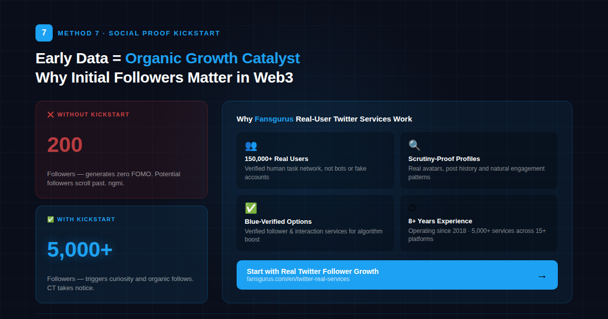 The projects seeing 10x follower growth in 2026 are the ones layering these methods intelligently: using real follower infrastructure from Fansgurus (https://fansgurus.com/en/twitter-real-services) to establish initial credibility, then compounding that foundation with organic content and community strategies that turn followers into true believers.