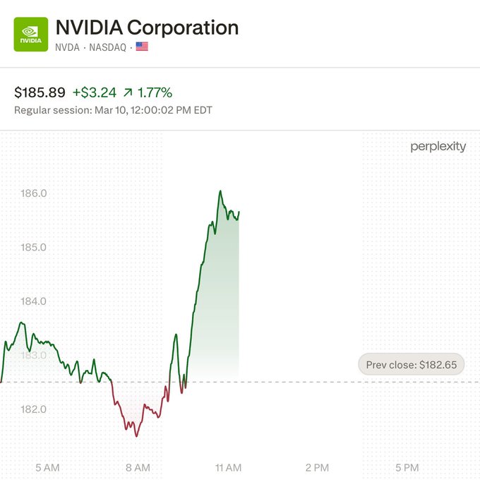 With GTC kicking off March 16, $NVDA is up ~2% as trader attention shifts to the Vera Rubin platform roadmap and Huang's AI infrastructure framing. TSMC's 30% revenue growth in Jan-Feb with traders zeroed in on Blackwell demand as the key read-through. Retail streams tracking CapEx ROI debate alongside the GTC catalyst as $NVDA holds a ~70% gain over the past year while slightly down YTD.