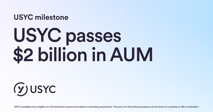 USYC has passed $2 billion in assets under management as industry adoption of tokenized money market funds expands.
