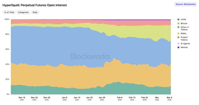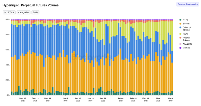 1 month later, OI from non-crypto assets doubled to 20% Volume share hit an all time high at 39% yesterday The @tradexyz team is on fire
