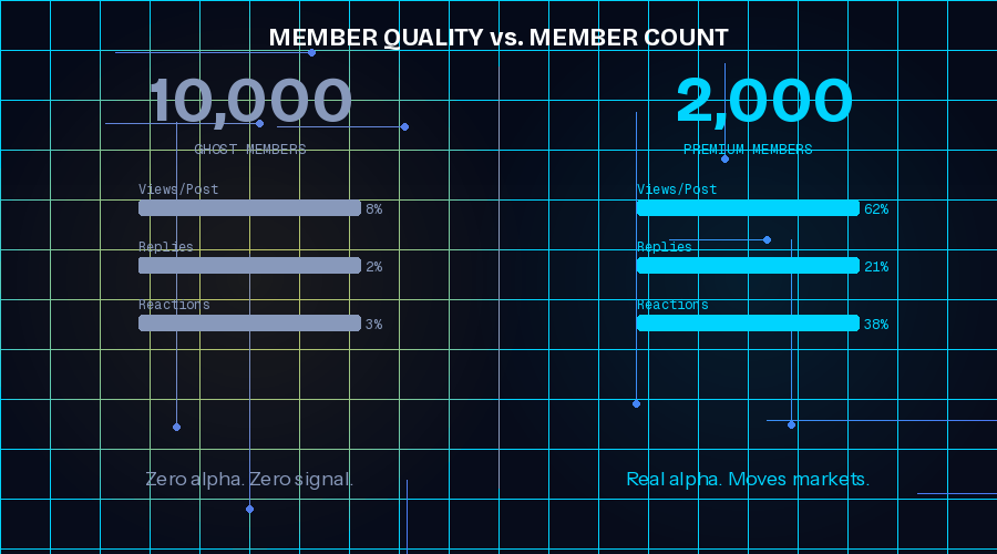 Here is the honest answer: nothing in the member count itself. A Web3 project can have 50,000 Telegram subscribers and still see every announcement land in silence. Meanwhile, a tightly built channel with 1,800 engaged members can move markets, generate CT buzz, and give VCs genuine confidence before a token launch. The difference is not the number — it is member quality, engagement architecture, and growth strategy.
