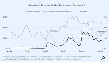 55% of @ether_fi 's revenue now comes from "Cash," while staking has dropped to 39%. With only 30 employees, they are generating $60M in annual revenue and managing $6B in staked ETH. x.com/AleaResearch/s…