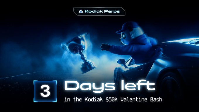 Only 3 days left to compete for $50,000+ in rewards in the @KodiakFi Valentine’s Trading competition And that’s just the start, unlock even more rewards by trading on Kodiak with @foxifytrade funded accounts! Check out the post below for more details
