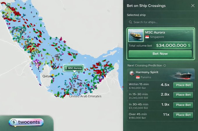 Global shipping is facing an unprecedented crisis and twocents has the solution. Today, we’re proud to announce House of Hormuz: Using public AIS data you can now bet on which cargo ships will attempt to cross the Strait and when they will re-appear on the other side. Once the crews start insider trading, they’ll all make a run for it and force the strait open! Iran can’t sink them all!
