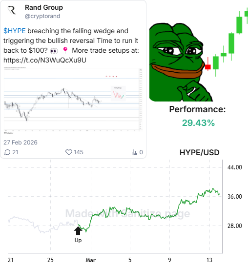 👏 A big shout-out goes out to @cryptorand for his impressive bottom call on Hyperliquid. Since his post two weeks ago, you would be +29.4% on your $HYPE investment if you followed his lead. 👀 Find which KOL's REALLY make the best predictions here: sanitize.page/leaderboard?utm_...…