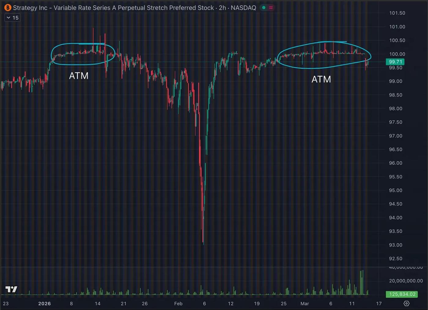 Odaily Note: The ATM will start operating when the STRC price reaches $100.