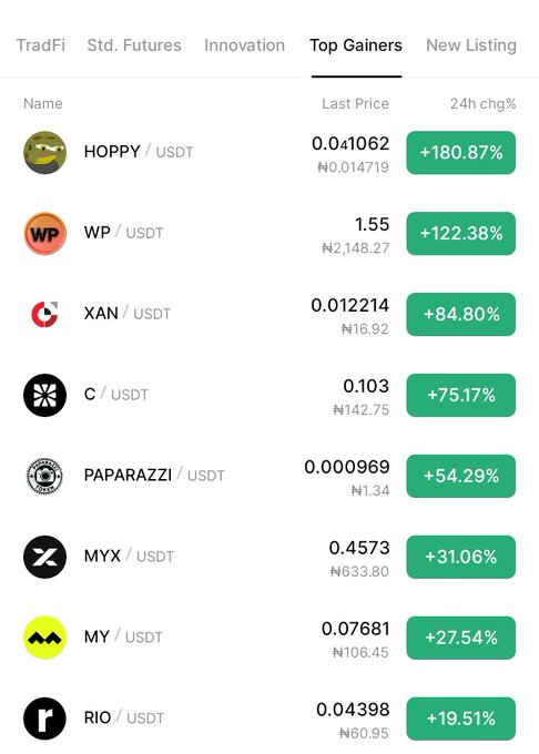Top movers on BingX today $HOPPY +180% $WP +122% $XAN +84% $C +75% $PAPARAZZI +54% Altcoin momentum heating up. Keeping an eye on the BingX Top Gainers list for the next breakout #CryptoGainers #BingX