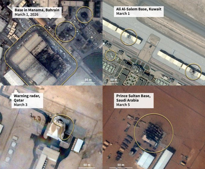 🇺🇸🇮🇷⚡️– Iran's precise attacks caused the US to limit the release of satellite images showing Iran's strikes on American targets. Images released in the early days of the war showed Iran's precise attacks on American radars, military bases, and oil refineries — The Economist reports.
